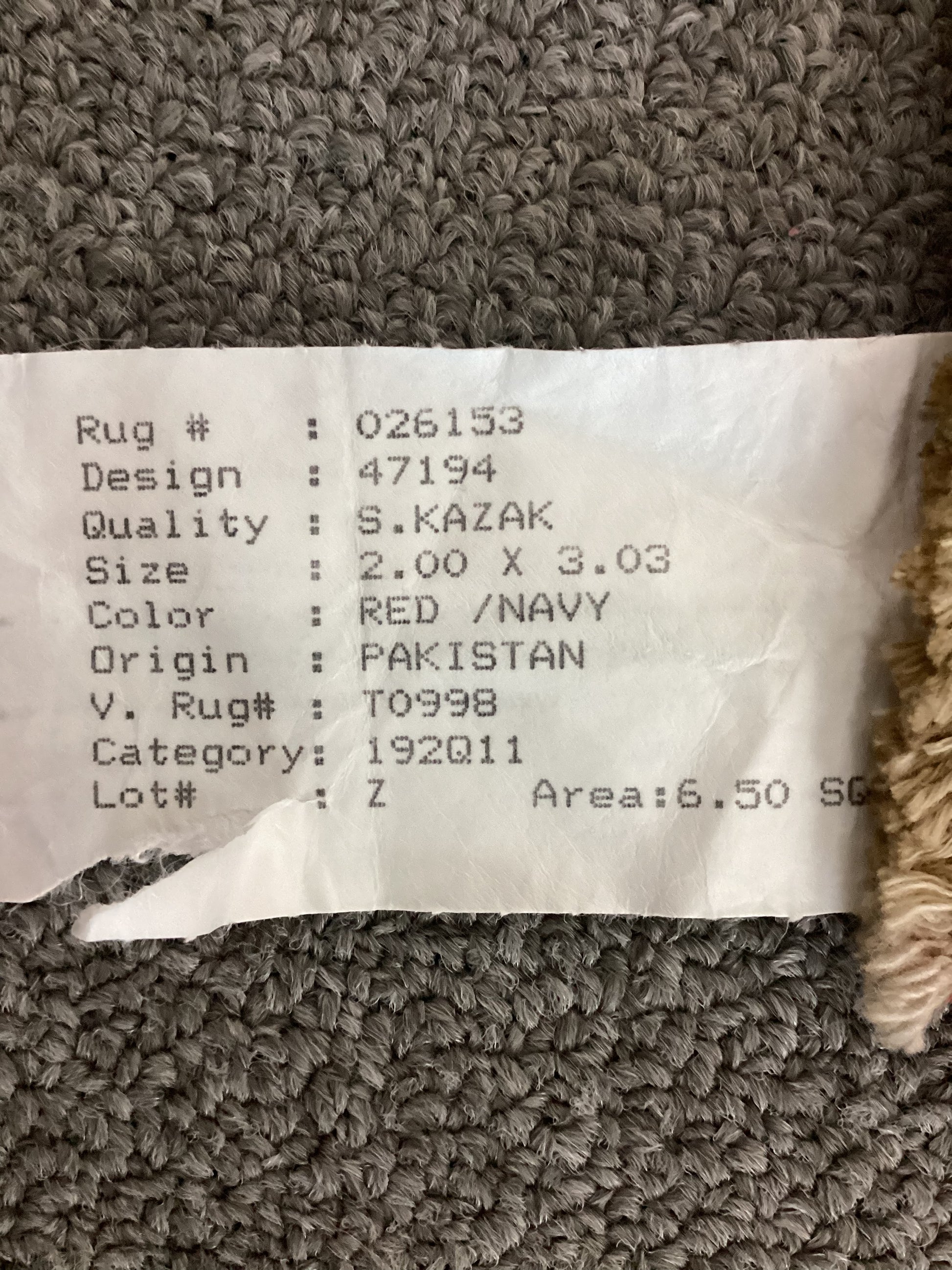 100% Wool, and handmade in Pakistan. 2.00 X 3.03